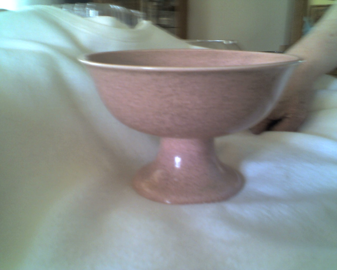 this is another piece of the garden club line, from 1957. the glaze is called fleck zephyr pink. Value is around 20.00 or so. thanks, steve n rose
